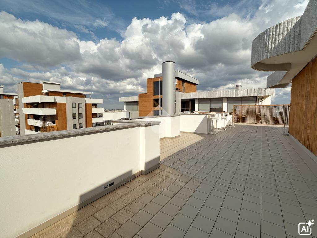 La soluzione, caratterizzata da una quadrupla esposizione che assicura luce naturale durante tutto l’arco della giornata, si distingue per la presenza di un terrazzo di circa 200 mq che regala una vista aperta e panoramica, ideale per momenti di relax o per accogliere con eleganza i propri ospiti.